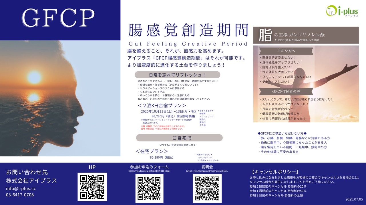 アイプラス「GFCP腸感覚創造期間」はそれが可能です